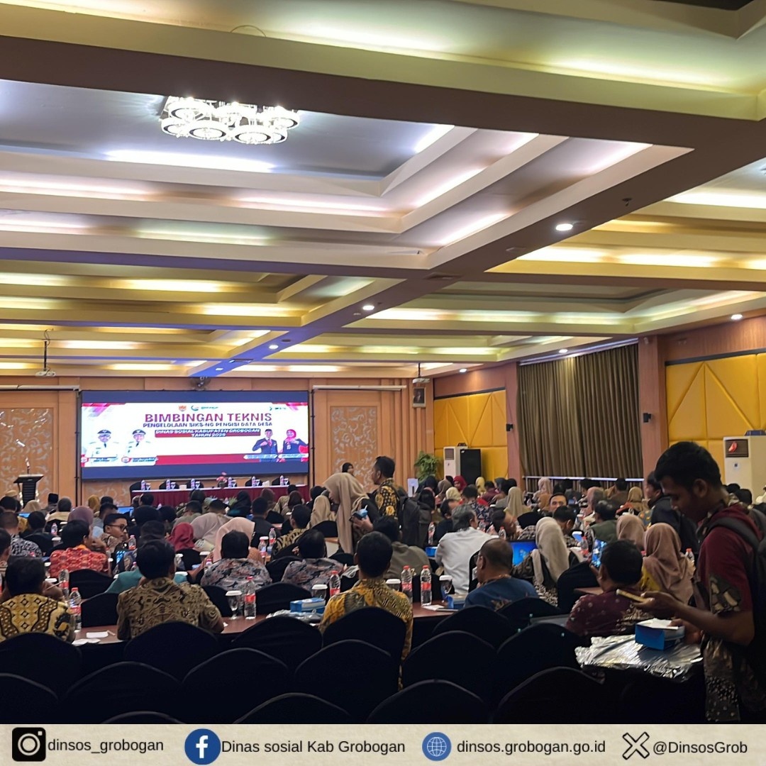 Grobogan, 2 Oktober 2025 – Dinas Sosial Kabupaten Grobogan menyelenggarakan kegiatan Bimbingan Teknis (Bimtek) Pengelolaan Sistem Informasi Kesejahteraan Sosial – Next Generation (SIKS-NG) bagi para pengisi data desa. Kegiatan ini berlangsung di Hotel 21 Grobogan dan diikuti oleh seluruh Operator SIKS-NG Desa se-Kabupaten Grobogan.